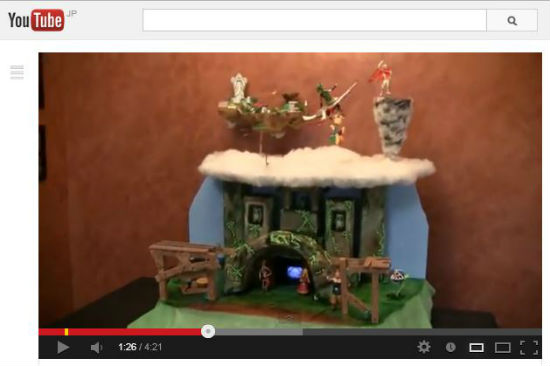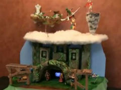 ゲームに登場するスカイロフトの町を、ケーキで再現。しかもケーキの上では機械じかけでキャラクターが動いています。雲の上ではロフトバードに乗ったリンクがクルクルと回って、ハープを持ったゼルダ姫の姿も。ただキャラクターは粘土で食べられないようです。