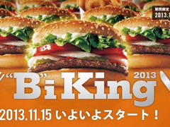 バーガーキングがおかわり自由キャンペーン「“B”iKing 2013」を11月15日から12月1日まで実施する。対象セットを買った人は、午後2時〜午後11時までの間ワッパーやポテトなどがおかわりし放題という企画だ。