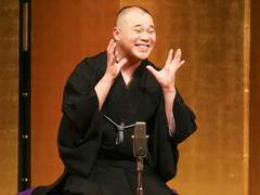 史上初、ネットで落語の独演会 桂文治さんの後ろにみんなのコメントが流れる