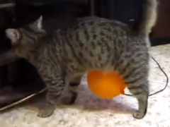 ニャンだこれは!? 静電気でくっついた風船に戸惑うネコ