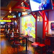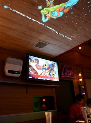 他にも「CHARACRO」には参加者を楽しませる演出も盛り沢山だ。店内の至る所に備え付けられたモニターや巨大スクリーンにはオリジナル映像が常に流れ続ける。2週間毎にお題が変わるヒーローランキングには、指定メニューを注文して手に入れるコインを使って、あなたの好きなキャラクターに投票することができる。極めつけは、特別メニューを頼んだ人だけが入ることを許されるスペシャルルーム。部屋の中では3Dアクションゲームを楽しむことができ、自らの手足を使って、タイガーやバニーとゲームの中で共闘できるのだ!