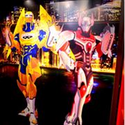 店内に入ると飛び込んでくるド派手な壁! 中央に立つ、映画の新キャラ・ゴールデンライアンも存在感たっぷりだ
