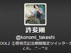 「テニスの王子様」で知られるマンガ家・許斐剛さんが期間限定でTwitterを始めた。新作「LADY COOL」第1巻の12月4日発売を記念したもので、アカウント名は@konomi_takeshi。11月23日の初ツイートから2日、フォロワー数はすでに6万5000人を超えている。