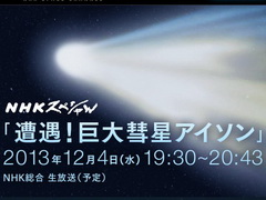 12月4日午後7時30分から司会にタモリさんを迎え、NHKスペシャル「遭遇!巨大彗星アイソン」が放送される。