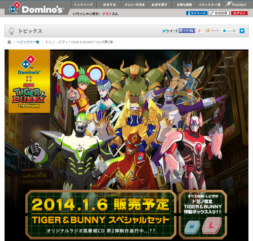 ドミノ・ピザが2014年1月に、アニメ「TIGER & BUNNY」とのコラボキャンペーンを開始する。