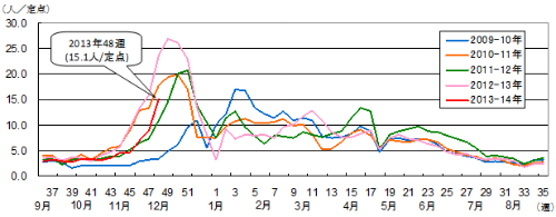 東京都福祉保健局は12月5日、ノロウイルス等の感染性胃腸炎の流行警報を発した。