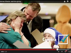 おもちゃ、スマートフォン、家に帰る航空券、スノーボード……次々と届くプレゼントに舞い上がる乗客たち。Androidタブレットが欲しかった少年は、思わず「No way!(信じらんない!)」と叫びます。極めつけは、ターンテーブルにも乗りきらない大型テレビのプレゼント。受け取り主は感極まって目頭が熱くなったようですね。サンタと抱き合う乗客らを見ていると、なんだかホッコリしてきます。