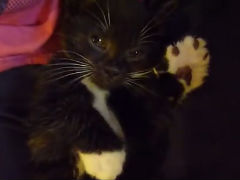 肉球を前に押し出してエアマッサージを続ける子ネコですが、眠くなってきたのか次第にまぶたが落ちてきて寝入ってしまいます。なんともかわいらしく、肉球でマッサージされたくなりますね。