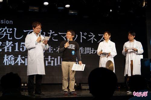 厳正なる審査(ニコ生投票)の結果、マッドネス大賞に選ばれたのは青山新さんの「インターネット内の住人が実世界に送り込むアバター(実体)を開発している」という研究発表。