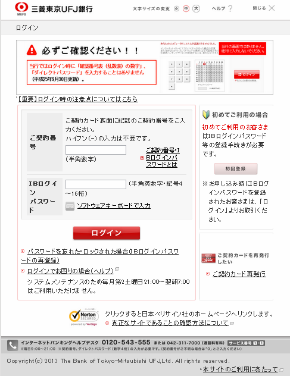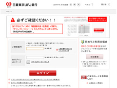 本物のログイン画面とうり二つ 三菱東京UFJ銀行をかたるフィッシングメールに注意