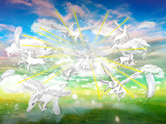 後光がさしてます! 羽が生えてます! っていうか空を飛んでます! そして周りにペガサスが1匹、2匹……7匹!!! 幸子さんは天使か何かだったんですか。イメージ図は幸子城の一部とのことですが、本番ではどんな風に表現されるのか、楽しみにしたいと思います。