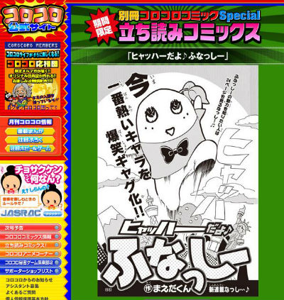 「ヒャッハーだよ♪ ふなっしー」というタイトルで、作者は「まえだくん」。コロコロコミックのサイトで一部が公開されている。
