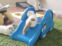 見てるだけで癒される 滑り台で遊ぶ子猫が悶絶かわいい