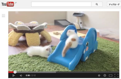 後ろ向きに滑り降りたり、次々と滑り降りてはそのままわちゃわちゃと絡まり合って遊んだりと、大はしゃぎの子猫。滑り台の上にのった子猫のしっぽを、別の子猫がひっぱったり、滑り台の下に潜り込んだりと、無邪気に遊ぶ様子がかわいらしくてたまりません。見ているほうも笑顔になってしまいます。