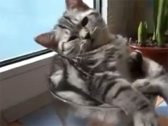 ガラスのコップ(?)にすっぽりハマって、うつらうつらと気持ちよさそうな子猫。ちょうどソファでリラックスしているようにも見えて、飼い主さんも思わず吹き出してしまっています。めんどくさそうな表情がまたイイですね。