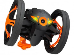 Jumping Sumoは、これまでのAR.Droneシリーズとは違った陸上型のドローンです。ボディの左右に備えたホイールで走行し、90度ターンなどにも対応します。そしてボディのおしりにある装置で、最大80センチの高さまでジャンプが可能。まるでバッタのように天高く飛び上がり、障害物を飛び越えたり、地面から机などの高い位置へと移動できます。こちらはカメラを搭載しているので、ドローン視点での操縦も可能。紹介動画では、物を保持する装置のようなものでお菓子をつかみ、ご主人様のもとへと持ち帰る様子が撮影されていました。アイデア次第でいろんな遊び方ができそうです。