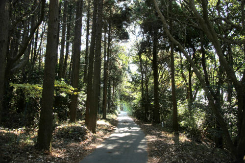 石段を登るのがきつい場合は、裏から山道を通って途中まで車で上がることもできる