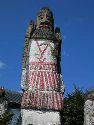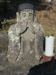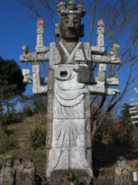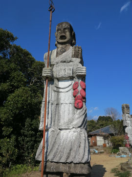 巨大なお坊さんが手に下げているのは……? 正解は「からいも」。南九州の方言でサツマイモのことを「からいも」と呼ぶ。からいもと書かれていないと分かりづらいかも?
