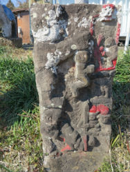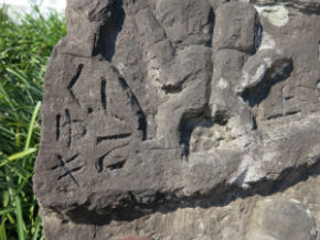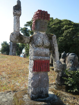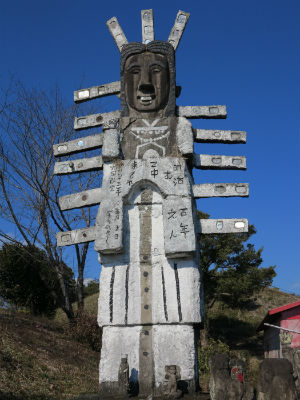 畑の中の田舎道を車で走っていると、小高い丘の上にトーテムポールのような石像が見えてくる。