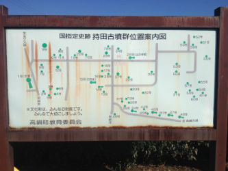 丘のふもとには持田古墳群。茶畑の合間合間にポコンポコンと隆起しているのが古墳