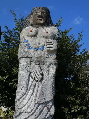 アマテラスオオミカミ。「古事記」では太陽の神として登場する。このアマテラスオオミカミ像は髪の毛がドレッドっぽい