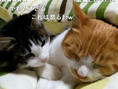 茶色ネコは時おり目を薄く開けて迷惑そうな表情。一方で黒白ネコが甘えるたび、動画の画面は「俺もやられたい」「なめなめしちゃらめぇぇぇぇぇぇ」とそのかわいさを称えるコメントで盛り上がるのでした。なお、動画説明によると茶色ネコはこの後マジ切れして黒白ネコを叩いたそうです。南無。