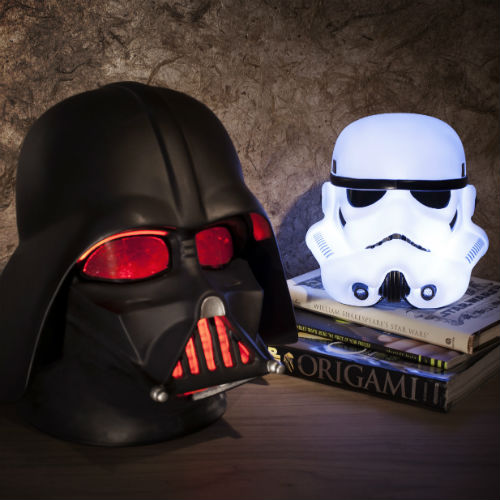 ベイダー卿とストームトルーパーのマスクの形をしていて、内蔵の5個のLEDがやわらかな光を放ちます。バッテリー式なのでコードは不要。残念ながらかぶることはできません。