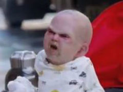 街中に放置されたベビーカー、中はよく見えないけど毛布の下から赤ちゃんの泣き声が。通行人が心配して近づくと、突然悪魔のような形相の赤ちゃんがガバッと起き上がって奇声を発する!