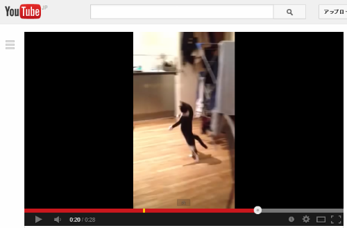 2足歩行するネコはけっこういるようですが、このネコちゃんはまた一風変わっています。