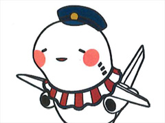 マスコットキャラは、飛行機をモチーフにしたデザインで、パイロット帽子をかぶっている。穏やかな表情に、くまモンのような赤い頬は、いかにもゆるキャラという雰囲気をだしている。