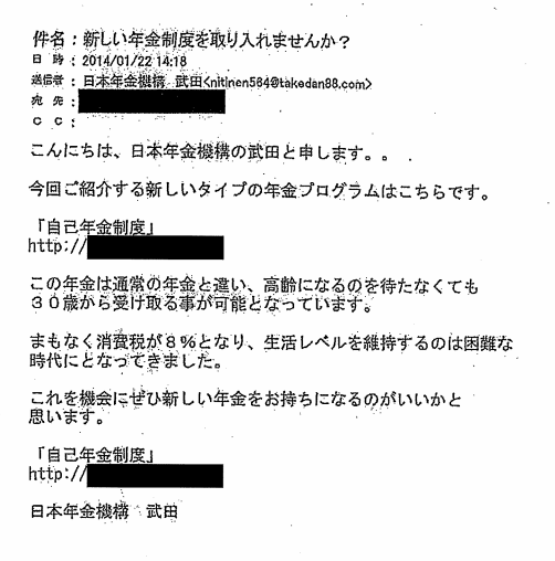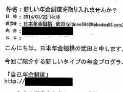 日本年金機構かたるメール出回る 架空の年金制度を宣伝