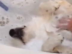 極楽極楽〜 お風呂で至福タイムに浸るワンちゃん