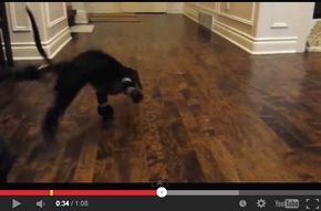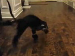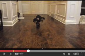 ニューヨークの厳しい寒さに備え、初めて4本足にくつを履いたというダックスフンドがどこかおかしな様子。フローリングの床を走ろうとして滑ってしまい、ドタバタとへんてこな走り方になってしまいます。