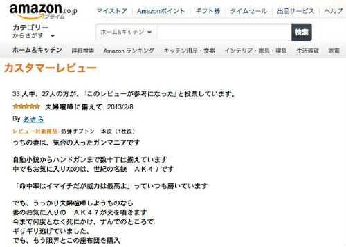 「妻のお気に入りのAK47が火を噴きます」 Amazonの防弾座布団のレビューがバイオレンス