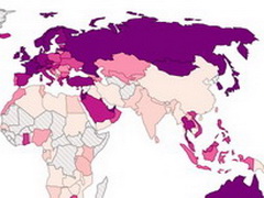 Twitterの「ソチ五輪」関連のツイートを指標に、どの国が盛り上がっているかを可視化した世界地図が公開されています。