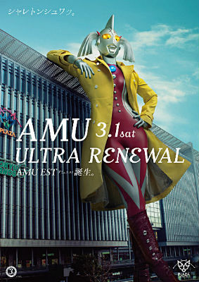 同施設は、開業3周年を迎えて全97店舗を改装し、3月1日にリニューアルオープンする。ウルトラの母は、アミュプラザ史上最大のリニューアルのスケール感を伝えるイメージキャラクターとして選ばれた。ビジュアルは、博多女子のイメージとも重なる、強さと優しさを備えたウルトラの母が、アミュプラザ博多で最新のファッションを手に入れたという設定。「美しく、スタイリッシュに進化したその姿は、シャレトンシュワッ!!」(※博多弁で「おしゃれでいらっしゃいますね!!」を「しゃれとんしゃー」と言う)