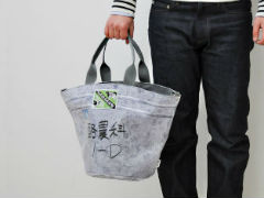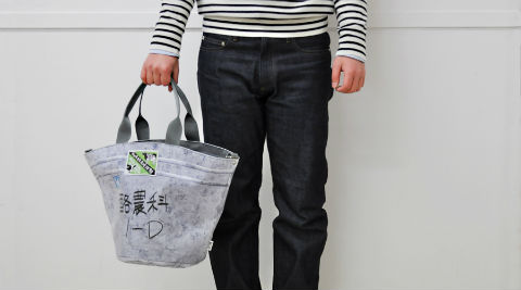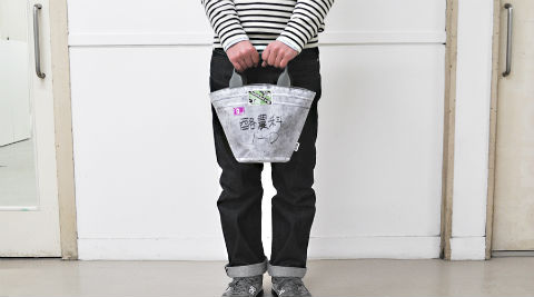 素材には、テントの屋根などにも使われるターポリンを採用。水をはじくので、汚れにも強くて丈夫という。リアルバケツトートは300×350ミリとショルダーでも使えるサイズ、リアルバケツミニトートは210×250ミリとランチトートサイズとなっている。