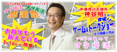 その名も「お前はもう萌えている」:声優・神谷明さん出演 「らき☆すた」の聖地・鷲宮で「オタ婚活」感謝祭