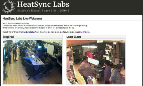 ちなみにハッカースペース「HeatSync Labs」のWebサイトでは、スペース内をリアルタイムに確認できるライブストリームカメラの映像が常時公開されています。 もしかしたら開発しているChris Matthieuさんの姿も見られるかも?