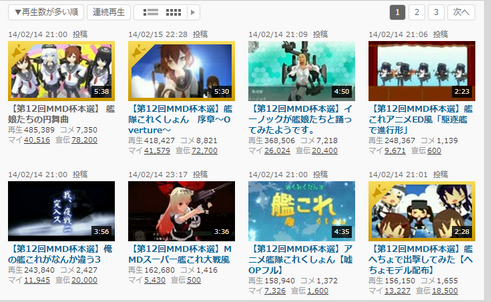 第12回MMD杯本選に登場した「MMD艦これ」の人気作