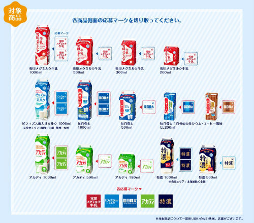 マググラスは全5種類。雪印メグミルクの主力5商品についている応募マークを10枚集めると5種類のマググラスセット(当選者100人)に応募可能。2枚でも、好きなマググラス1つ(当選者は各500人)を選んで応募できますよ。