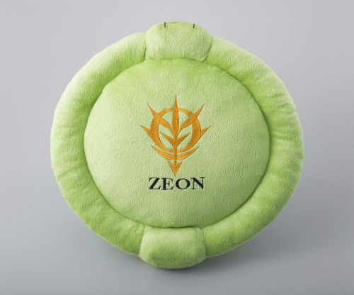直径40センチでパステルグリーンの起毛素材を使用。裏面には「ジオン公国エンブレム」が刺しゅうされている。予約は準備数に達し次第終了し、発送は6月を予定。