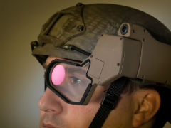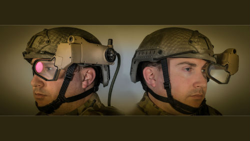 ヘルメットに取り付け、シースルーのディスプレイに地点情報やターゲットなどを現実の風景に重ねて表示できます。暗視能力も強化しており、人員や資産を追跡する機能もあるそう。