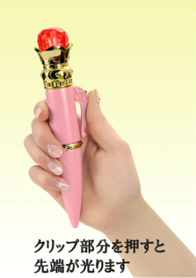 過去に発売されたセーラームーン玩具を実用的にアレンジした「Moonlight Memory Series」の第2弾。赤い宝石のようなモチーフや、ゴールドメッキで玩具のデザインを再現しつつ、ペンのピンク部分にパール塗装を施して高級感を演出した。クリップ部分を押すと先端が光ってペンが出てきて、ボールペンとして使用できる。