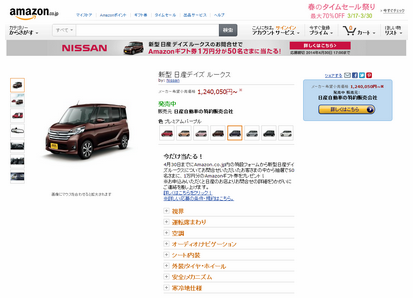 日産自動車は3月28日、Amazon内に新型日産「デイズルークス」の特設ページを開設した。同サイト経由での購入者1人に超巨大なAmazon仕様の箱にこん包して納車する。