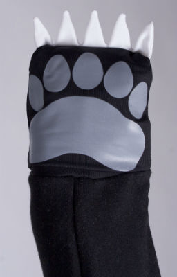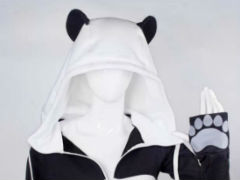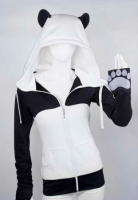 白と黒のカラーリングに、フードにはパンダの耳。袖には肉球の模様が入っています。袖の先にはパンダの爪を模した装飾までついている細かさ。