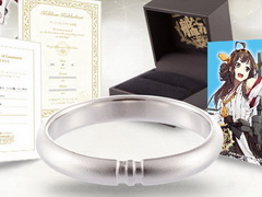 アイテムはシルバーの指輪・リングケース・生写真・ケッコンカッコカリ証明書・品質保証書がセットしたもので、指輪は全3種類。刻印なしが1万5000円、刻印ありが1万8000円(ともに税別)。なお、2013年12月23日までのキャラクターが対象で、商品は入金確認後約40日を予定しています。