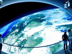 TeNQの目玉は直径11メートルの穴型シアター「シアター宙(ソラ)」。床に穴が開いた独特の形状のシアターで、入館者はのぞき込みながら、地球や惑星の映像を宇宙から「見下ろす」視点で楽しめる。映像は4K(ハイビジョンの4倍の解像度を持つ映像フォーマット)超えの高精細で作成されたもの。国際宇宙ステーションから見下ろした地球の映像や、ほかの惑星、ハワイ島のマウナロア山で撮影した星空などが上映される予定だ。 一度の鑑賞人数は最大70人、全員が最前列でのぞきこめる作りとなっている。