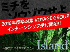 VOYAGE GROUPが2016年度卒の大学生を対象に体験型のインターン「Island」を実施します。舞台は無人島。1泊2日の合宿形式で行われ、仲間と力を合わせてチーム資金を獲得し、無人島でのミッションに挑戦するというプログラムで、現在参加者を募集しています。