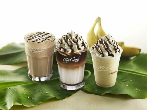 日本マクドナルドは4月18日から、「チョコバナナラテ」「アイスチョコバナナラテ」「バナナスムージー」を順次発売する。カフェコーナー“McCafe by Barista”併設店舗で販売する。